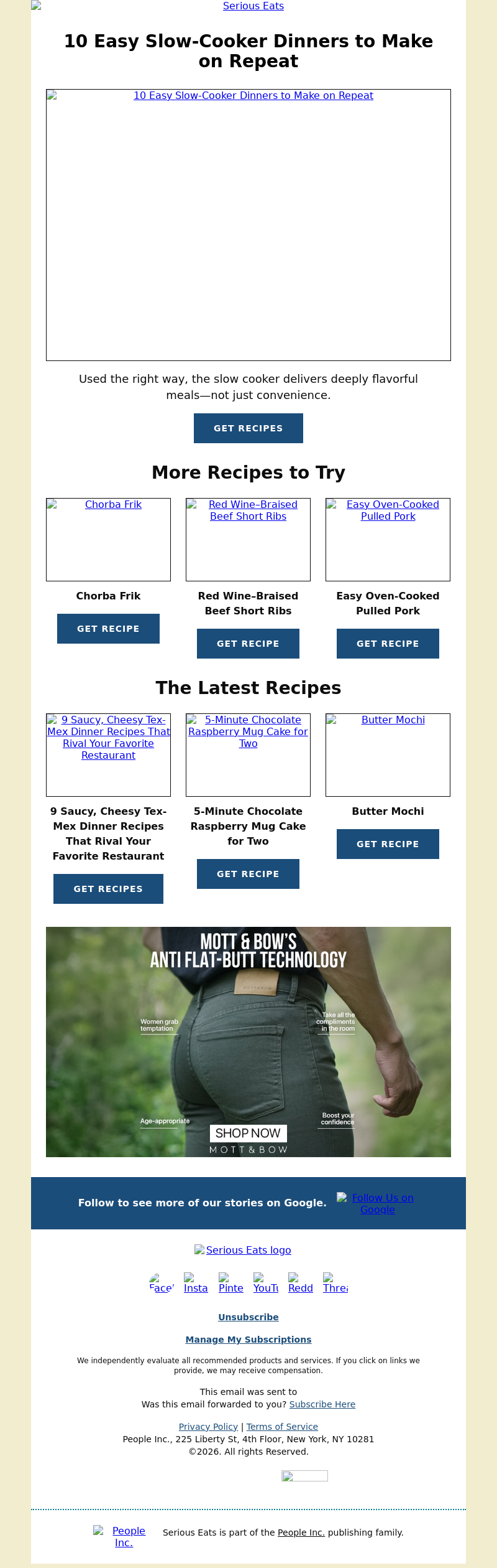 10 Easy Slow-Cooker Dinners to Make on Repeat Used the right way, the slow cooker delivers deeply flavorful meals—not just convenience. Get Recipes