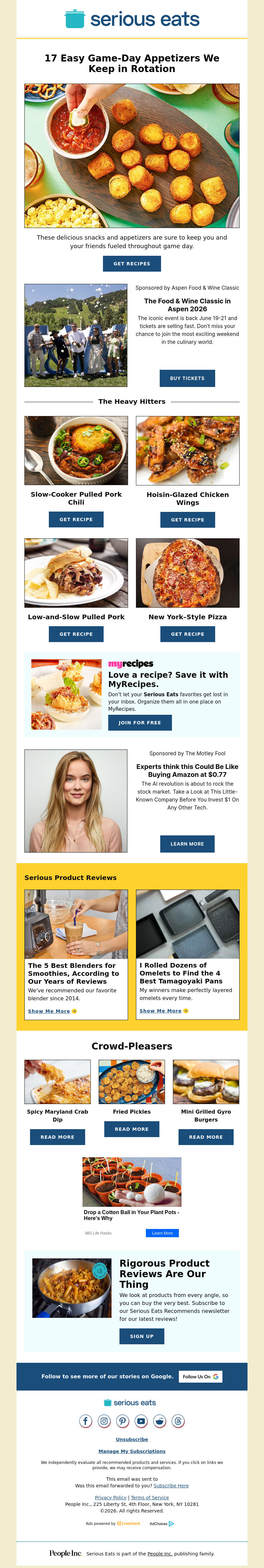 | Subject | 17 Easy Game-Day Appetizers We Keep in Rotation |