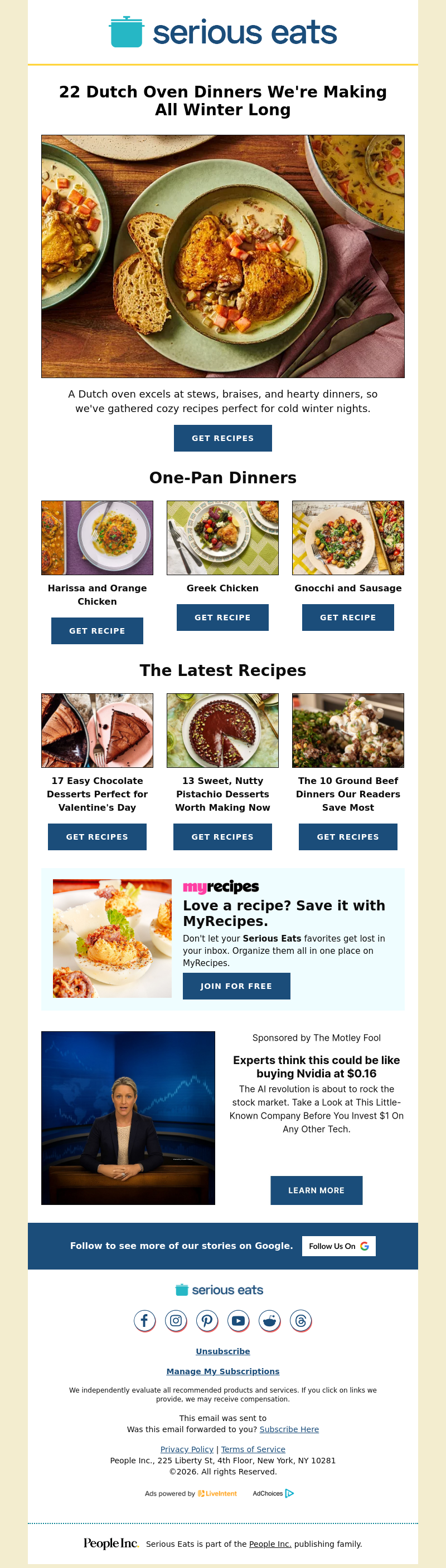 The Latest Recipes 17 Easy Chocolate Desserts Perfect for Valentine's Day Get Recipes 13 Sweet, Nutty Pistachio Desserts Worth Making Now Get Recipes The 10 Ground Beef Dinners Our Readers Save Most Get Recipes