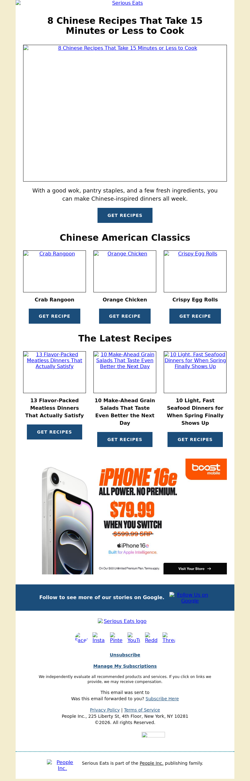 The Latest Recipes 13 Flavor-Packed Meatless Dinners That Actually Satisfy Get Recipes 10 Make-Ahead Grain Salads That Taste Even Better the Next Day Get Recipes 10 Light, Fast Seafood Dinners for When Spring Finally Shows Up Get Recipes
