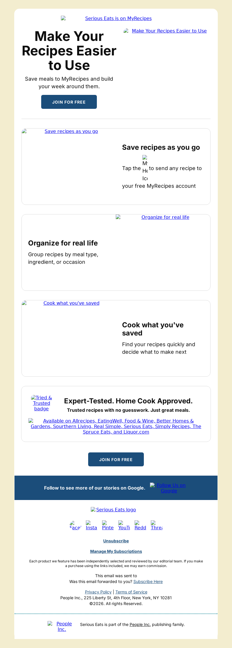 Make Your Recipes Easier to Use Save meals to MyRecipes and build your week around them. JOIN FOR FREE