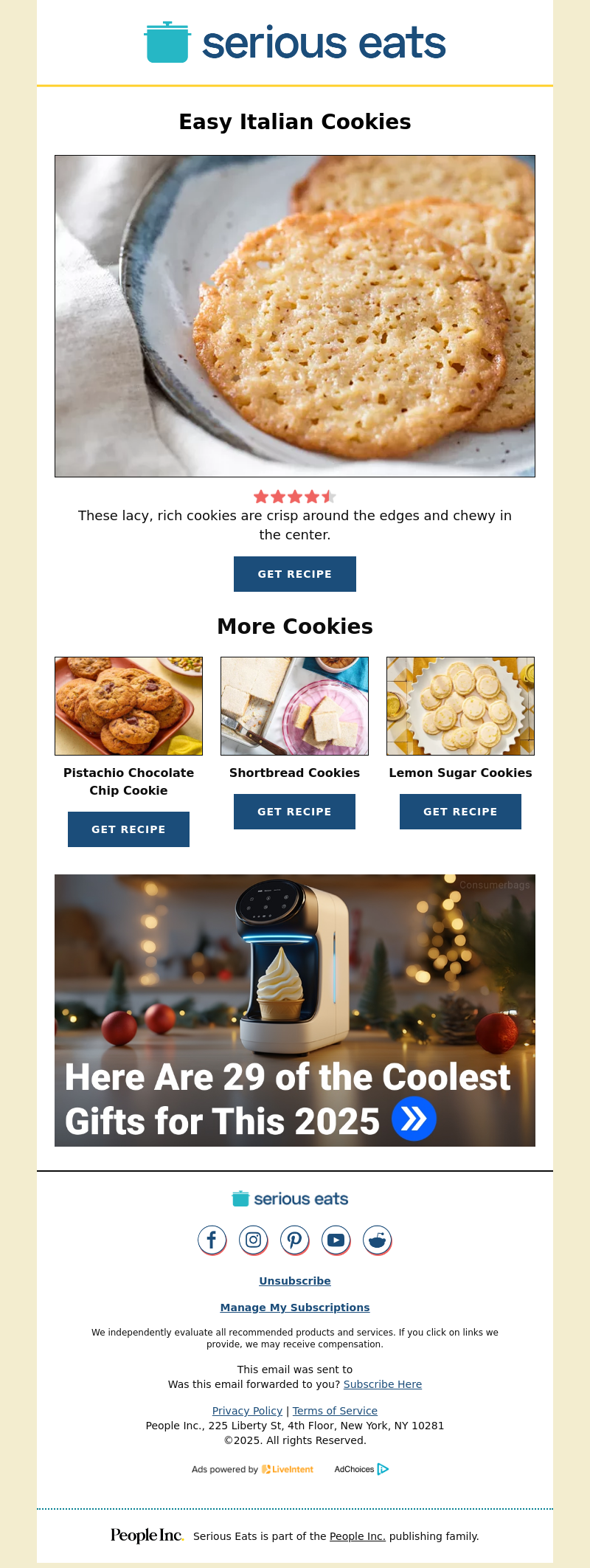 Easy Italian Cookies These lacy, rich cookies are crisp around the edges and chewy in the center. Get Recipe