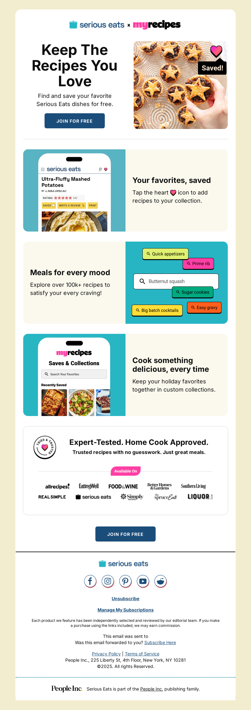 Expert-Tested. Home Cook Approved. Trusted recipes with no guesswork. Just great meals. JOIN FOR FREE