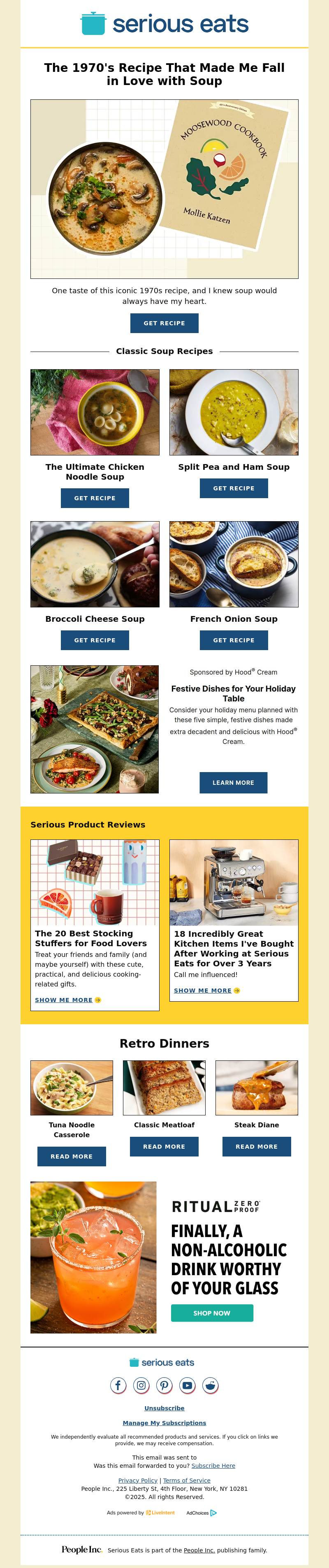 Retro Dinners Tuna Noodle Casserole READ MORE Classic Meatloaf READ MORE Steak Diane READ MORE