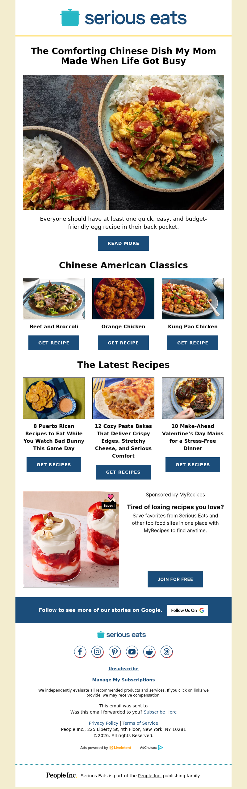 The Latest Recipes 8 Puerto Rican Recipes to Eat While You Watch Bad Bunny This Game Day Get Recipes 12 Cozy Pasta Bakes That Deliver Crispy Edges, Stretchy Cheese, and Serious Comfort Get Recipes 10 Make-Ahead Valentine’s Day Mains for a Stress-Free Dinner Get Recipes