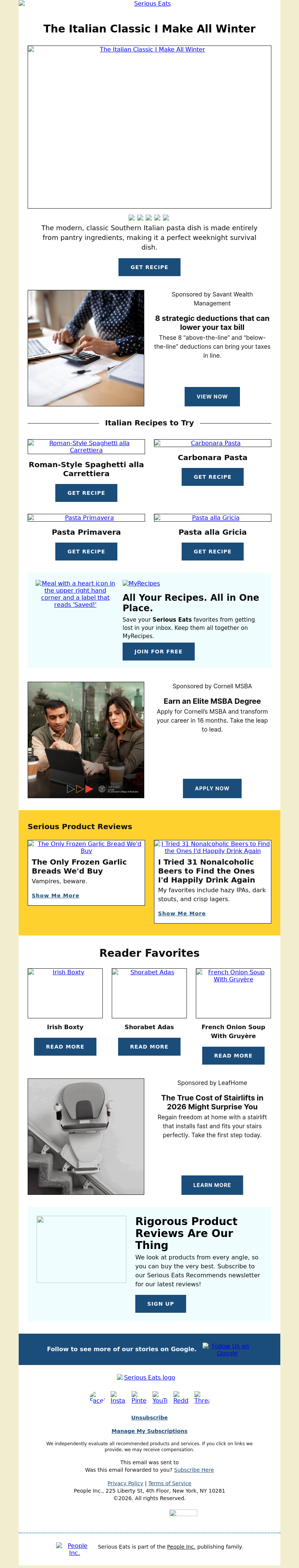 The Italian Classic I Make All Winter The modern, classic Southern Italian pasta dish is made entirely from pantry ingredients, making it a perfect weeknight survival dish. Get Recipe