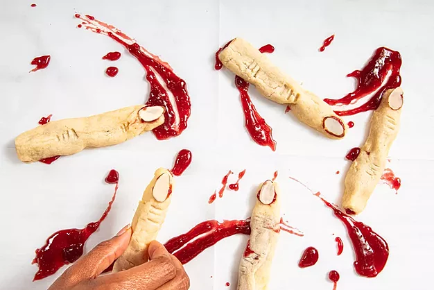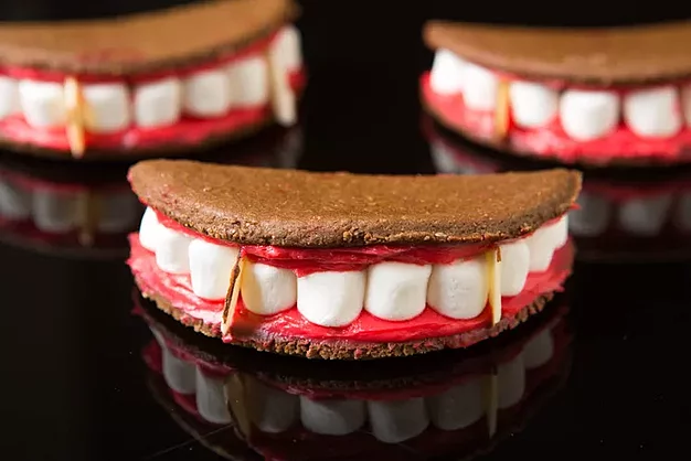 Spooky Treats Witch Finger Cookies GET RECIPE Vampire Mouth Marshmallow Sandwich Cookies GET RECIPE