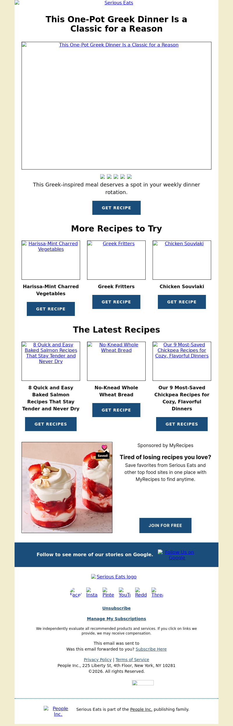 This One-Pot Greek Dinner Is a Classic for a Reason This Greek-inspired meal deserves a spot in your weekly dinner rotation. Get Recipe