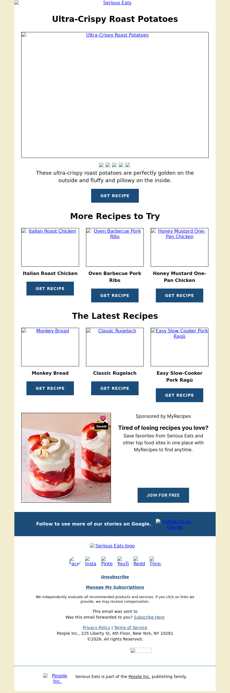 The Latest Recipes Monkey Bread Get Recipe Classic Rugelach Get Recipe Easy Slow-Cooker Pork Ragù Get Recipe